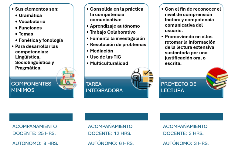*Con el propósito de lograr un aprendizaje significativo, el curso se basa en 3 componentes: