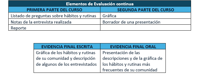 Evidencia final oral: Presentación de las descripciones y de la gráfica de los hábitos y rutinas más frecuentes de su comunidad.